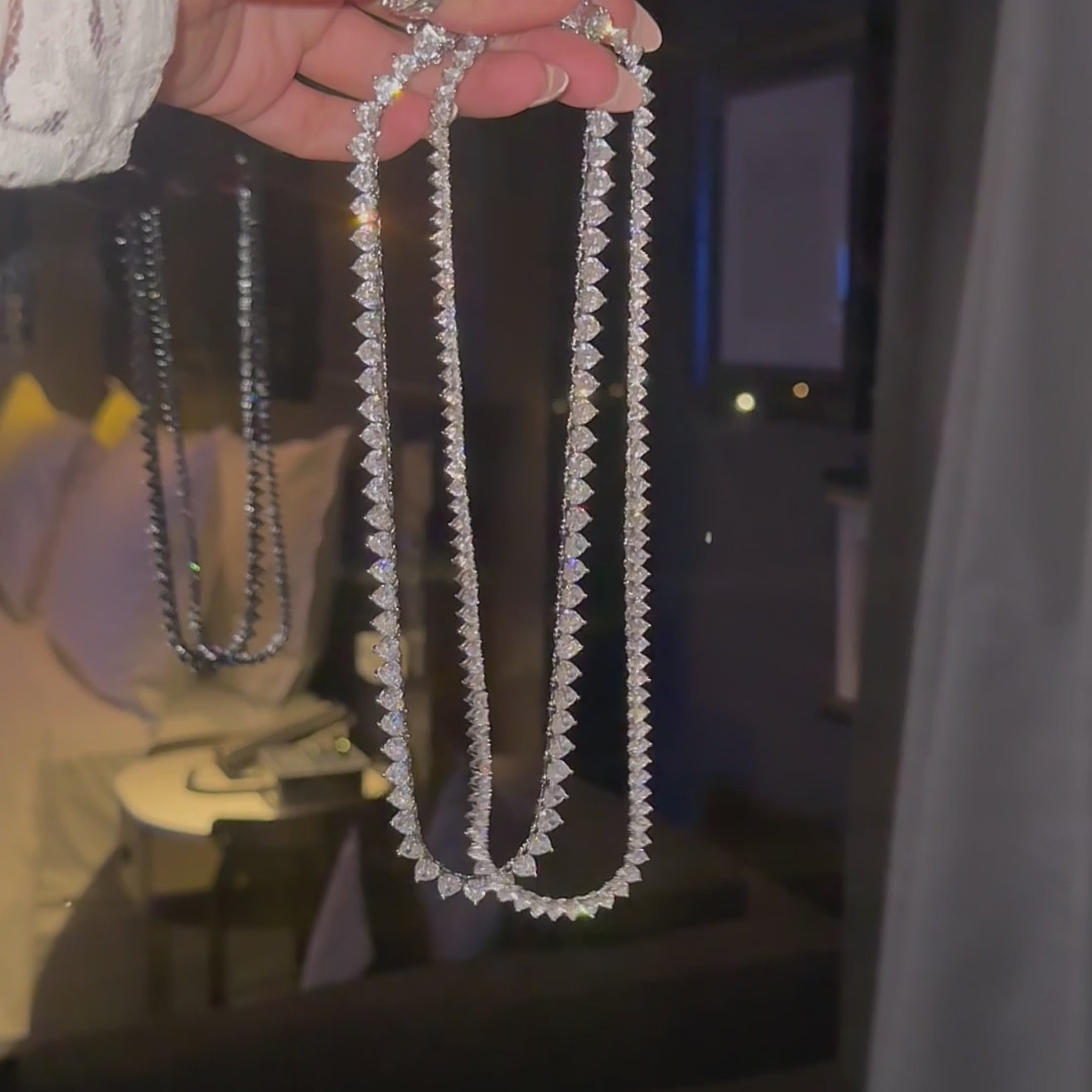 A dainty version of our classic "Aphrodite" heart tennis necklace. Carefully designed & set to ensure the chain does not twist/turn during wear.